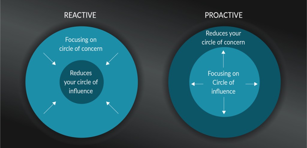 In an attempt to combat this, I wanted to offer a timeless truth I first learned about from Victor Frankl via Stephen Covey, the author of The Seven Habits of Highly Effective People. Frankl, a Holocaust Survivor and author of Only My Life, teaches us about attitudinal value, which focuses on how we respond to that which life brings us – particularly in its most difficult moments. Covey expands upon this and challenges us to focus on our Circle of Influence rather than our Circle of Concern. His argument, rightly, reminds us that by focusing on all the things that concern us, but which we have no power to influence, we decrease our own power and agency to affect change. On the other hand, when we concentrate on what we can influence, irrespective of our concerns, we naturally expand the scope of our influence. Take a look at the image below: